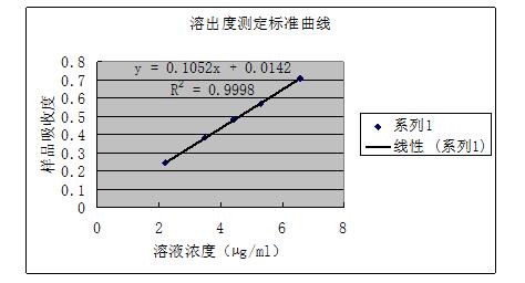 上表的數據表明:本品除在水中溶出度稍差外,在鹽酸溶液(0.9→1000)和磷酸鹽緩沖液 (pH6.8)中樣品均溶出完全,無明顯差別,選擇用鹽酸溶液(0.9→1000)作為溶出介質。