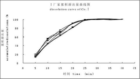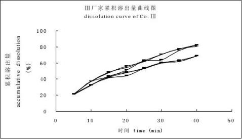 Fig 1 The dissolution curves of cimetidine tablets from different companies, Co.Ⅰ (A), Co.Ⅱ (B), Co.Ⅲ(C) 5 討論