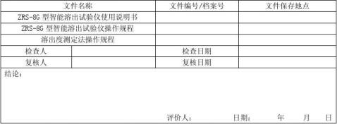 根據(jù)確認(rèn)記錄中“1.文件檢查記錄”的要求,核對相關(guān)文件,確保文件完整。相關(guān)人員接受了確認(rèn)方案及相關(guān)操作規(guī)程的培訓(xùn)。確保ZRS-8G型智能溶出度儀及其他儀器經(jīng)過校準(zhǔn),在有效期內(nèi),且有相應(yīng)的證書。