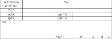 設(shè)置運(yùn)行時間為45分鐘并運(yùn)行,從轉(zhuǎn)桿開始轉(zhuǎn)動,“秒信號指示燈”開始閃亮,用秒表開始計時,當(dāng)轉(zhuǎn)桿停止運(yùn)行,“秒信號指示燈”恒亮不閃,秒表計時停止,比較秒表與實(shí)際運(yùn)行時間的時間差。