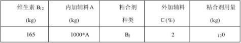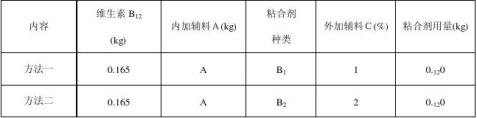 工藝二的用料:維生素B12,內(nèi)輔料,粘合劑F,外加輔料C(濃度2%)。