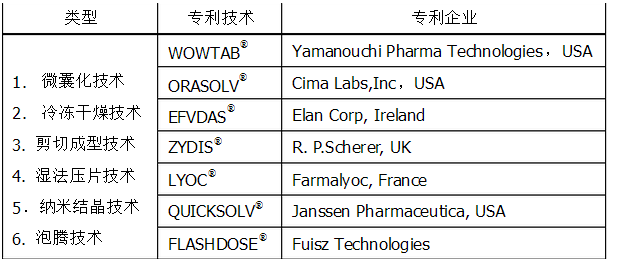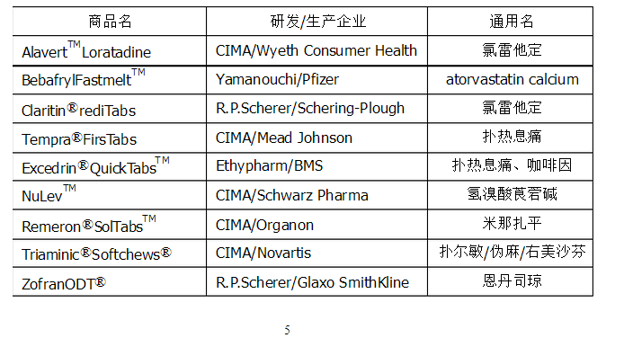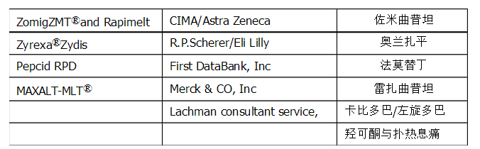 從上表品種可以看出,對口崩片藥物的選擇但并無特殊的限制,主要考慮適合的人群的需求及相應的疾病需要,并根據(jù)生產(chǎn)工藝、特定技術、病人的依從性等方面考慮藥物及藥物的劑量。例如采用冷凍干燥技術時,因為過多的水溶性藥物可能引起凍干品的低共熔現(xiàn)象,而不能實現(xiàn)水分的凍干,得到的制品板結,故所能包含的水溶性藥物的劑量要比水不溶性藥物的劑量低。另外,過多的藥物量可能產(chǎn)生掩蔽不良嗅味或苦味的實際困難。對口腔粘膜有強烈剌激性的藥物也不宜制備成口崩片。